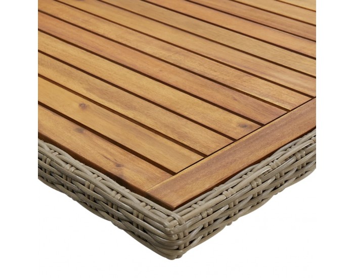 Градинската маса е изработена от РЕ ратан, което я прави устойчива на атмосферни влияния и издръжлива. Стоманената рамка с прахово покритие и плотът от акациево дърво масив правят масата здрава и стабилна. Благодарение на леката конструкция масата също е лесна за местене.