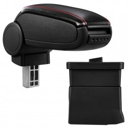 Облегалка за ръце за автомобилПодходящ за следните модели:Fiat 500 (от 2007)Материал: еко кожаЦвят: черен с червен шев- Подлакътникът е подплатен, контейнерът за съхранение е облицован. - С подвижен капак- Облегалката за ръце я доставяме с всички необходими части и упътване за монтаж- Лесен монтаж /..