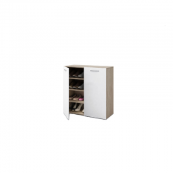 шкаф за обувки Този модерен шкаф за обувки разполага с три накланящи се врати и предлага идеалното решение за спестяване на място за съхранение на обувки. Атрактивният му дизайн го прави привличащ вниманието във всяка стая. Вътре в шкафа ще намерите достатъчно място за спретнато и подредено съхранен..