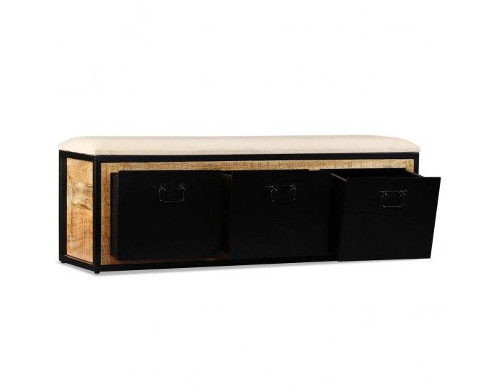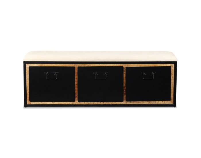 Пейката за антре е ръчно изработена от мангово дърво масив, което е стабилно, издръжливо и красиво, а майсторството на изработката допълва забележителния ретро стил. Всяка стъпка от процеса се извършва с най-голямо внимание, било то полиране или лакиране. Майсторската изработка и красивите дървесни шарки правят всяка мебел уникална и леко различна от следващата. Рамката е изработена от трайно ковано желязо, което допринася за здравината на пейката. В допълнение, 3-те големи вътрешни отделения осигуряват достатъчно пространство за всякакви предмети, които искате да държите под ръка.