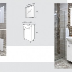 Комплект за баня TulanОгледало за баня● PVC● LED вградено осветление●Неподвижен PVC рафт под огледалото● Размери в мм: Ш - 380 / В - 650 / Д - 130 Долен шкаф● PVC● Мивка Mini 380● Една вратa● Плавно затваряне● Панти хром-никел● Размери в мм: Ш - 380 / В - 500 / Д -..