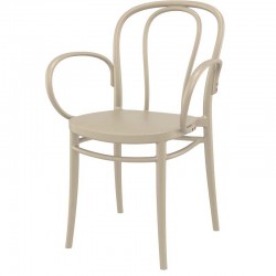 Стол Victor XL, бежовСтол Victor XL е ретро модел, тип виенски стол. Изработен е чрез моно инжекция от полипропилен, подсилен с фибро стъкло,което го прави подходящ както за вътрешно, така и за външно обзавеждане. Възможност за стифиране.Широчина на седалката-41см.Широчина с подлакътника-57см.цвят: ..