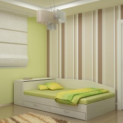 Ъглови легла Компакт 3В обзавеждането за спалня или детска „Компакт 3“ класическите ъглови легла са разработени с нова визия. Фрезованите в плоскостите елементи, придават едно ново звучене на иначе познатия ни вид обзавеждане.Те са изработени от 18 мм ЛПДЧ хигиенен клас Е1 пясъчен бук и венге в комб..