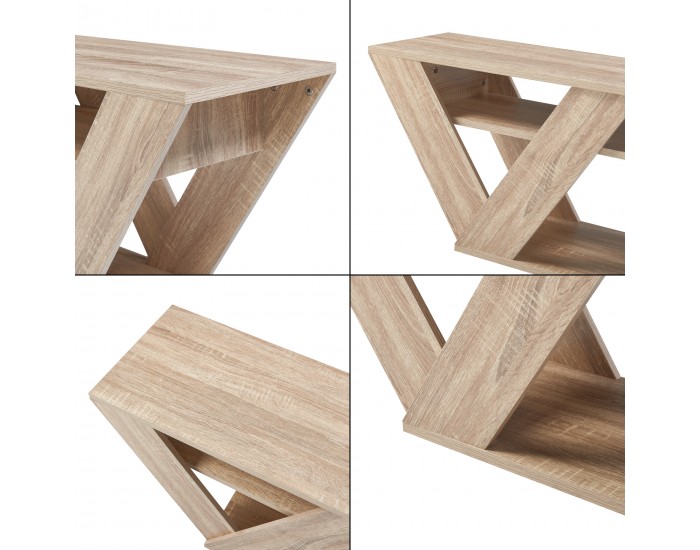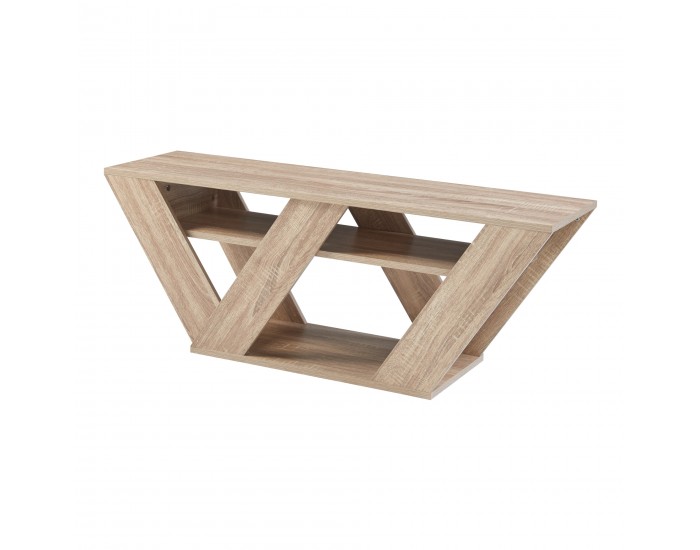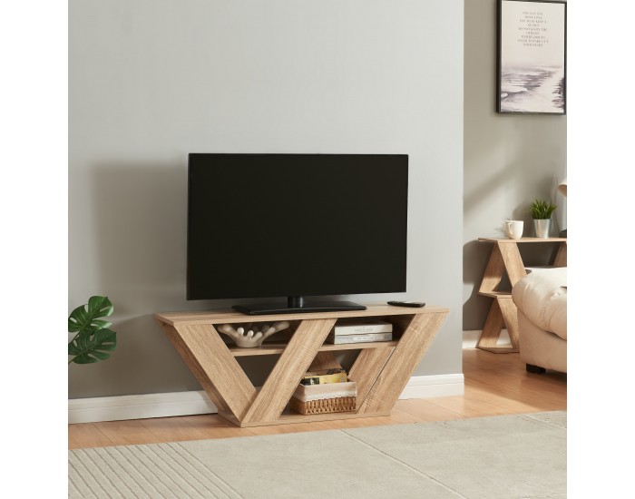 Щедрият плот на стойката за телевизор предлага достатъчно място за вашия телевизор. Под него има два практични рафта, идеални за съхранение на медийни устройства като DVD плейъри или игрови конзоли. Това не само допринася за спретнатия външен вид, но също така гарантира, че всички важни устройства и аксесоари винаги са лесно достъпни.