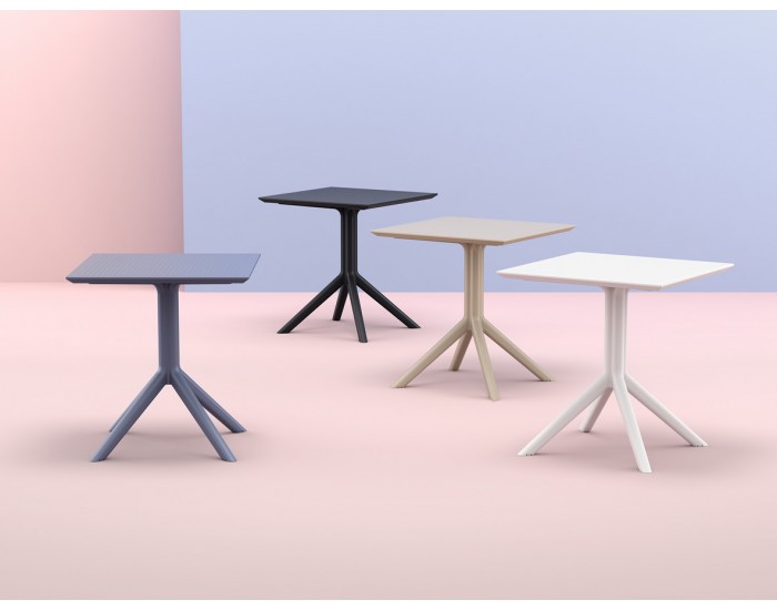 Маса Скай е изработена от висококачествен полипропилен с UV защита. За външно и вътрешно обзавеждане, кетеринги, балкони и басейни. Предлага се разглобена.