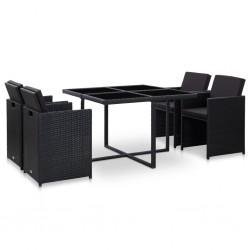 Нашият полиратанов трапезен комплект с елегантен дизайн ще бъде чудесен избор за хранене на открито или за релакс в градината или вътрешния двор. Комплектът градински мебели има здрава прахово боядисана стоманена рамка, което го прави много стабилен и издръжлив. Благодарение на водоустойчивия PE рат..