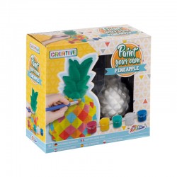 Комплектът включва керамичен ананас, 5 цветни бои, малка палитра и четка за рисуване.