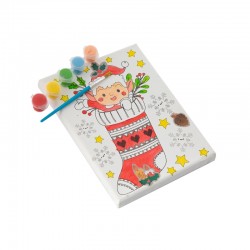 Платно за оцветяване с изображение на коледен чорап и стикери за залепяне.