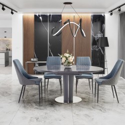 Трапезна маса BM-RicardoТрапезна маса Ricardo e функционална маса,която ще донесе във Вашия дом стил и уют.Дължина: 120-160 смШирочина: 120 смВисочина: 76 смРазтегателна: ДаЦвят плот: Пепелив мраморЦвят крака: Тъмно пепеливМатериал: MDF,стъкло,неръждаема стоманаФорма: Кръгла/ЕлипсовиднаПродуктът се ..