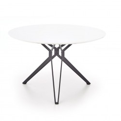 Трапезна маса модел VEGASразмери: fi 120/76 см материал: МДФ лак / хромирана стоманацвят: плот - бял, крак - бял / златен..