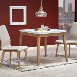 Трапезна маса BM-Ksawery 1Ефектна трапезна маса, която ще ви очарова с дизайн и функционалност! Масaта е с безупречна изработка, която впечатлява с елегантни и красиви линии, допринасяйки за една изискана атмосфера в дома. Маса BM-Ksawery 1, се предлага в два варианта - изцяло бял, дъб со..