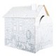 Къщата за игра е направена от картон и може лесно да се сглоби. След това идва най-приятният момент – тя може да бъде оцветена по ваш вкус с пастели, флумастери и цветни моливи.