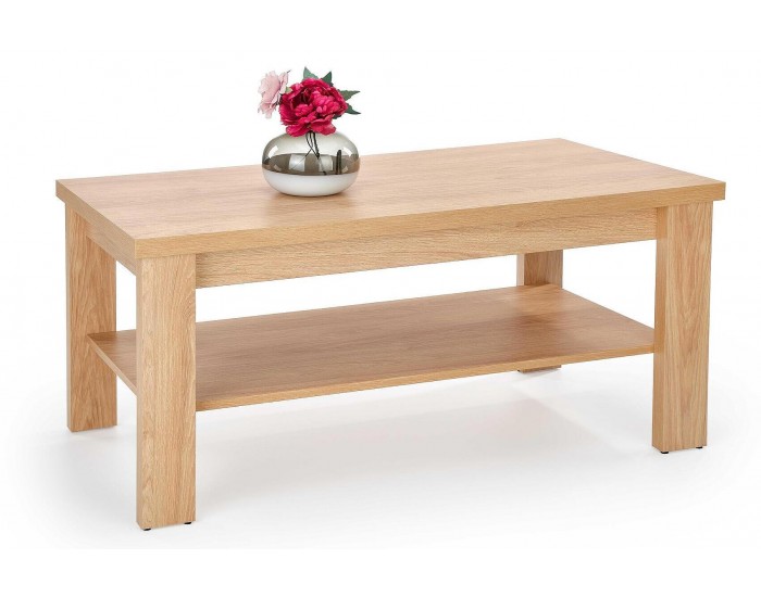 Предлага се в основен цвят на плот натурален дъб, както и в комбинация с бял или черен мат за краката на масата. Под плотът има отворен рафт, който позволява съхранение и лесен достъп до най-използваните вещи във Вашата дневна.