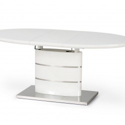 Разтегателна трапезна маса BM-Monaco 1Разтягаща се маса в бял цвят с метална лъскава основа от неръждаема стомана.С изключително елегантен и красив дизайн, подчертан от изящен плот, покрит с ефектна основа, масата ще внесе лукс и стил във вашия интериор. Масата се съчетава прекрасно с различни трапе..