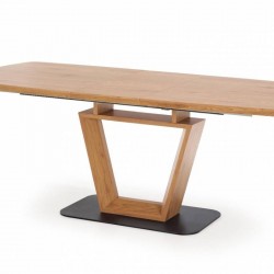 Разтегателна трапезна маса BM-Sandor 3 1Луксозна, разтегателна трапезна маса BM-Sandor 3 1, е съвременна мебел с иновативен дизайн за Вашия дом. Притежава идеално гладка повърхност на плота в цвят златен дъб, който при необходимост може да се разгърне до 200 см. и нестандартни извити крака. За ..