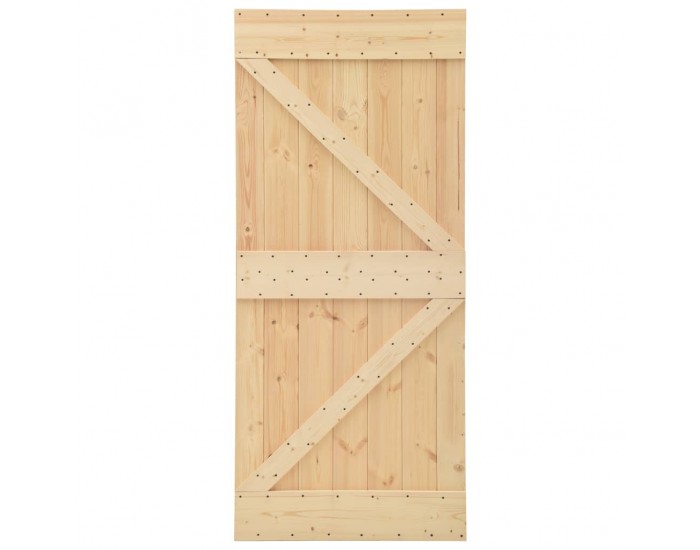 Вратата е изработена от боров масив, което я прави изключително стабилна и издръжлива. Можете също да украсите или боядисате дървената врата по ваш вкус, благодарение на нейната естествена повърхност. Доставката включва монтажен комплект за плъзгаща се врата за лесен монтаж. Прахово боядисаните стоманени монтажни части добавят здравина.