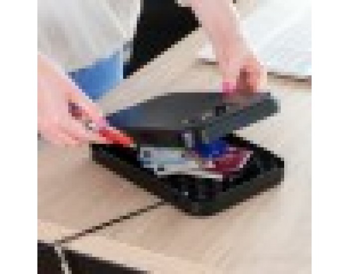 Ако сте фенове на света на джаджите, InnovaGoods ви предлага най-добрите и оригинални стоки за дома, автомобила, пътуването, децата, технологиите, забавление и др.! Открийте широка гама от висококачествени продукти, които се отличават със своята функционалност, ефикасност и иновативен дизайн, като Преносим сейф със защитен кабел Prisaven InnovaGoods! Този преносим сейф е перфектен за съхранение на ценности и заради лесното му носене навсякъде. Отварянето му е с цифрова комбинация (3 цифри). Включва защитен кабел за закрепване и аксесоари за монтиране на стената. Здрав железен сейф с подплатена вътрешност за съхранение на бижута, карти, пари, паспорти и др. Идеален за домове, офиси, пътувания, хотели и др. Заключване с ключ: нашият сейф се отваря ръчно с цифрова комбинация за предотвратяване на кражби или нежелани отваряния. Този 3-цифрен ключ за сигурност може да се персонализира, така че можете да изберете този, който предпочитате и по този начин да защитите съдържанието на кутията. Здрав, преносим: този железен сейф е много устойчив и непробиваем, благодарение на своя дизайн против лост и кодовата си ключалка. Вътрешността му, подплатена с полиуретанова пяна, позволява да бъде шумоизолиран и да съхранява предмети от всякакъв вид с по-голяма защита и сигурност. Благодарение на плоската си форма и компактен размер, той е много лек и лесен за дискретно съхранение навсякъде. Многофункционален, универсален: нашият преносим сейф е лесен за носене където Ви е необходим, и перфектен за защита на всякакви ценности, като бижута, банкови карти, пари в брой, флаш устройства, документи, паспорти, ключове и др. Освен това, можете да го съхранявате в чекмеджета, шкафове, раници, чанти, куфари, жабки на кола и др, Идеален за домове, офиси, пътувания, хотели и др. Защитен кабел: Включва стоманен защитен кабел, който позволява да бъде закрепен към всяка опора за затягане, за да се предотврати кражбата му. Закрепва се лесно, като се следват включените инструкции за употреба. Може да се закрепи към бюро, рафт, легло и др. Аксесоари за монтаж.: нашият сейф предлага множество възможности, тъй като включва също дюбели и винтове, за да го поставите на стена, ако желаете. Материал: Желязо Полиуретан Цвят: Черен Вид: Сейф Закопчалка за безопасност: Ръчна комбинирана ключалка Включва: Кабел за безопасност Устойчив и траен: Качествени материали Многократна употреба: Може да се използва за много неще и предоставя много място Основна употреба: Бижута, карти и други дребни ценности Оригинална и преносима: Идеален за домове, офиси, пътувания и др. Включва аксесоари за монтаж: шпилки и винтове Прибл. Размери: 24,5 x 5,5 x 16,5 cm Опаковка и ръководство на 24 езика: английски, френски, испански, немски, италиански, португалски, холандски, полски, унгарски, румънски, датски, шведски, финландски, литовски, норвежки, словенски, гръцки, чешки, български, хърватски, словашки, естонски, руски, латвийски.