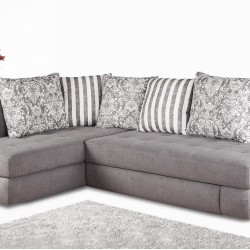 Ъглов диван Vanesa BM, с ракла, разтегателенОписание Лесно се превръща в удобно легло чрез повдигане на изцяло металния механизъм тип "подматрак", а лежанката е оформена като ракла. Седалищната част е с 13 см. високоеластичен дунапрен върху напрег..