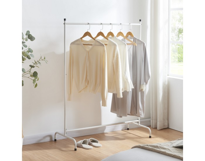Практичната и стабилна стойка за дрехи се поставя бързо и лесно. Разполага с портманто за закачане на чанти или дрехи, например.