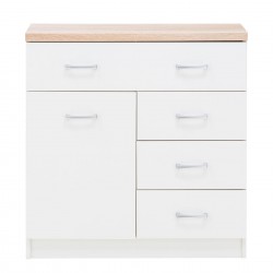 Скрин Zele KOM3S-E20, дъб вотан/бял лакСкрин Zele KOM3S-E20, дъб вотан/бял лак е част от модулна система Zele, която предлага голямо разнообразие от модули, подходящи за детска стая, дневна, спалня и офис.Скринът е снабден с три чекмеджета, където ще може да подредите Вашите вещи. Материал..